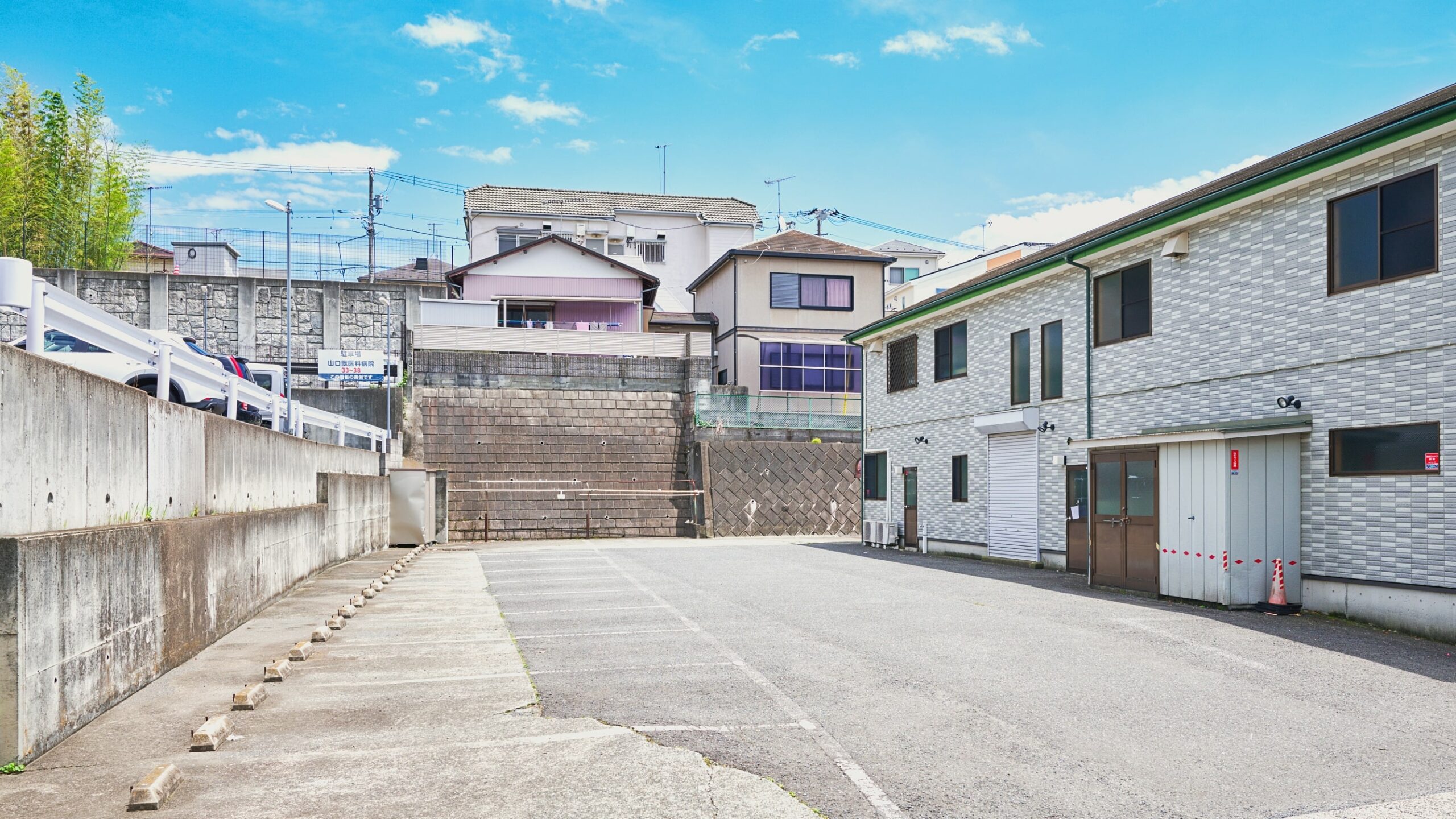 病院正面入り口側に4台分、敷地内病院裏側駐車場に約10台分、病院裏手坂の上に6台分、合計約20台分の駐車スペースがございます。