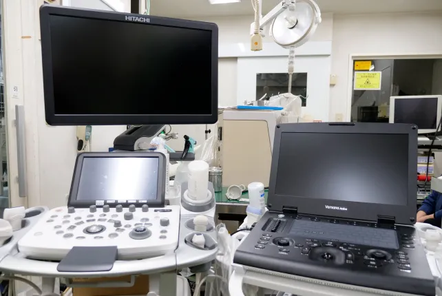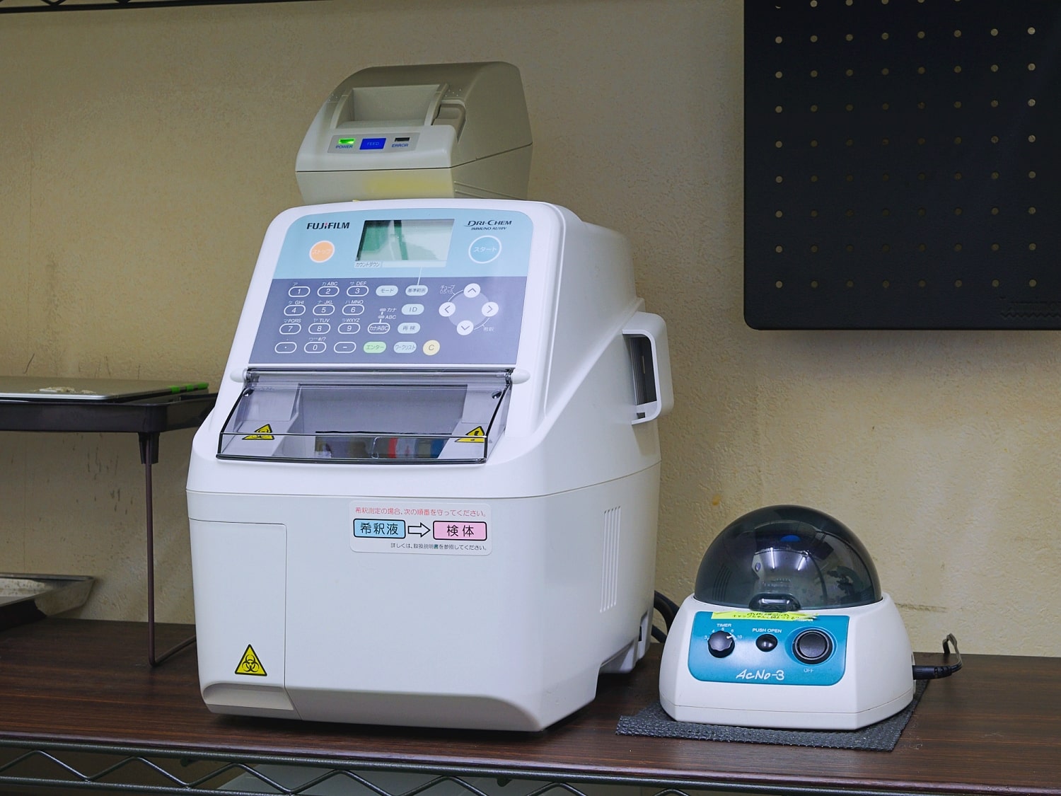 血液化学検査機器および自動血球計算装置があり、院内で迅速に血液検査を行うことができます