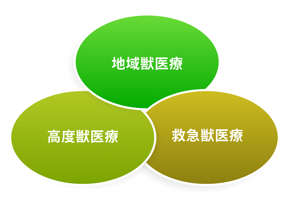 一次診療施設(動物病院グループ)は、何かあった時にまず連れて行く動物病院として「動物と人にやさしく」をコンセプトに、ワクチンなどの予防医療や、吐き気や下痢、軽い外傷などの検査・治療をすることはもちろんのこと、大切な家族である動物たちの健康を守り、動物とご家族が幸せな生活を送れるように、身近で些細な困りごとから頼りになる動物病院として皆様の傍にありたいと思います。